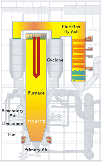 Dengan mendaur ulang bahan di dalam siklon, teknologi CFB ini dapat mencapai efisiensi pembakaran yang tinggi bahkan untuk bahan bakar yang sulit terbakar sekalipun. CFB boiler juga dirancang agar tahan terhadap kondisi pembakaran paling berat sehingga dapat mencegah korosi dan aus pada tabung, dan mencegah abu menempel pada cerobong asap dengan lebih baik, serta memungkinkan untuk beroperasi pada suhu tinggi dan kondisi uap bertekanan tinggi untuk semua jenis bahan bakar. Kemudian untuk pembangkit berskala besar, tersedia juga ultra-supercritical steam 257 bar dan 603˚C. Saat ini,kami telah mencapai tingkat pengoperasian tinggi sebesar 98%, kami fokus menjaga ROI pelanggan dengan pengiriman yang tepat waktu dan sesuai spesifikasi.