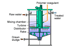 Peralatan koagulasi sedimentasi yang berkecepatan tinggi ini menghasilkan air bersih yang telah diolah dengan cara memisahkan suspended solids (SS) yang terkandung di air buangan dengan cepat. Dengan struktur yang unik, mampu membuat floc dengan karakter sedimentasi yang bagus dan injeksi kimia yang lebih sedikit dibandingkan produk di masa sebelumnya. Semua ini bertujuan untuk meningkatkan tingkat pembuangan SS dengan membuat aliran yang seragam di dalam tanki dan meningkatkan konsentrasi endapan terbuang dengan kondensasi yang efisien, sehingga mampu mencapai suatu sistem yang kompak dan berperforma tinggi.