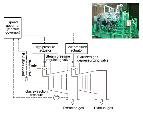 Dalam kasus uap diekstraksi dari intermediate stage turbine dan dialirkan ke kebutuhan pabrik, dengan menggunakan internal controlled extraction mampu mensuplai uap dengan stabil dari operasi beban berat hingga normal. Internal controlled extraction adalah suatu sistem pengaturan tekanan ekstraksi yang stabil dengan menggunakan control valve yang dipasang di bagian dalam casing turbine dan mengontrol bagian yang bertekanan lebih tinggi dari bagian ekstraksi . Internal control valve dapat dipasang hingga dua tingkat, sehingga hanya dengan satu steam turbine mampu mensuplai dua lokasi dengan tekanan berbeda (medium pressure dan low pressure).