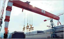 Goliath crane adalah derek tipe portal besar yang utamanya di pasang di galangan kapal. Goliath crane kami ini memiliki kapasitas angkat maksimum mencapai 1.200 ton dan mampu membantu meningkatkan efisiensi operasi pembuatan kapal. SHI memiliki pangsa pasar domestik tertinggi.
