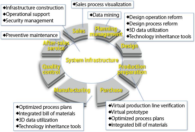 Dengan tema "Mengubah Teknologi Informasi menjadi Strategi", perusahaan Lightwell telah mengumpulkan dan memanfaatkan pengetahuan yang dimilikinya selama 40 tahun sejak didirikan, dan secara konsisten menyediakan berbagai macam layanan berikut untuk mengatasi tantangan dalam proses desain dan operasi manufaktur.