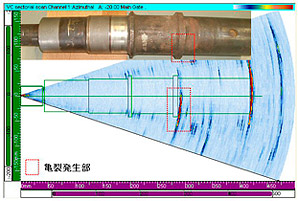 Shaft reduction gear crane, shaft roda kereta rel listrik maupun shaft penyalur tenaga yang banyak dipakai di pabrik, secara berkala dibongkar untuk pemeriksaan karena ada kemungkinan kerusakan karena kelelahan. Dengan melakukan pemeriksaan dengan phased array ultrasonik pada ujung shaft, dapat mengevaluasi kesehatan shaft tanpa perlu membongkar.