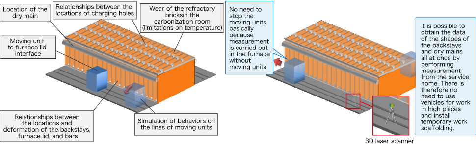 Dapat mengelola koordinat absolut data bentuk dari tungku coke, dan dapat tetap melacak posisi fasilitas dan perubahan bentuk