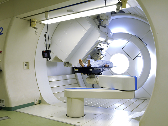 In recent years increasing attention has focused on proton beam treatment in clinical settings. One of its advantages is that it involves far less physical trauma to the patient's body than invasive surgery. Patients can maintain their quality of life and continue to go about their daily affairs while receiving treatment. Proton beams exhibit a physical property known as "black peak" that enables a large amount of energy to be released at a specific predetermined location, annihilating the tissue there. By making use of this property, the proton beam can be concentrated on the cancerous focus while causing almost no damage to the healthy cells surrounding it. This means that proton beam therapy can be more effective than conventional forms of treatment. In addition, since the proton beam can be directed even at cancerous foci that are near vital organs, it can be used to reach cancers that were previously untreatable. Proton beam therapy is yielding impressive results in the treatment of cancer of the head and neck, lungs, liver, and prostate gland, among others.