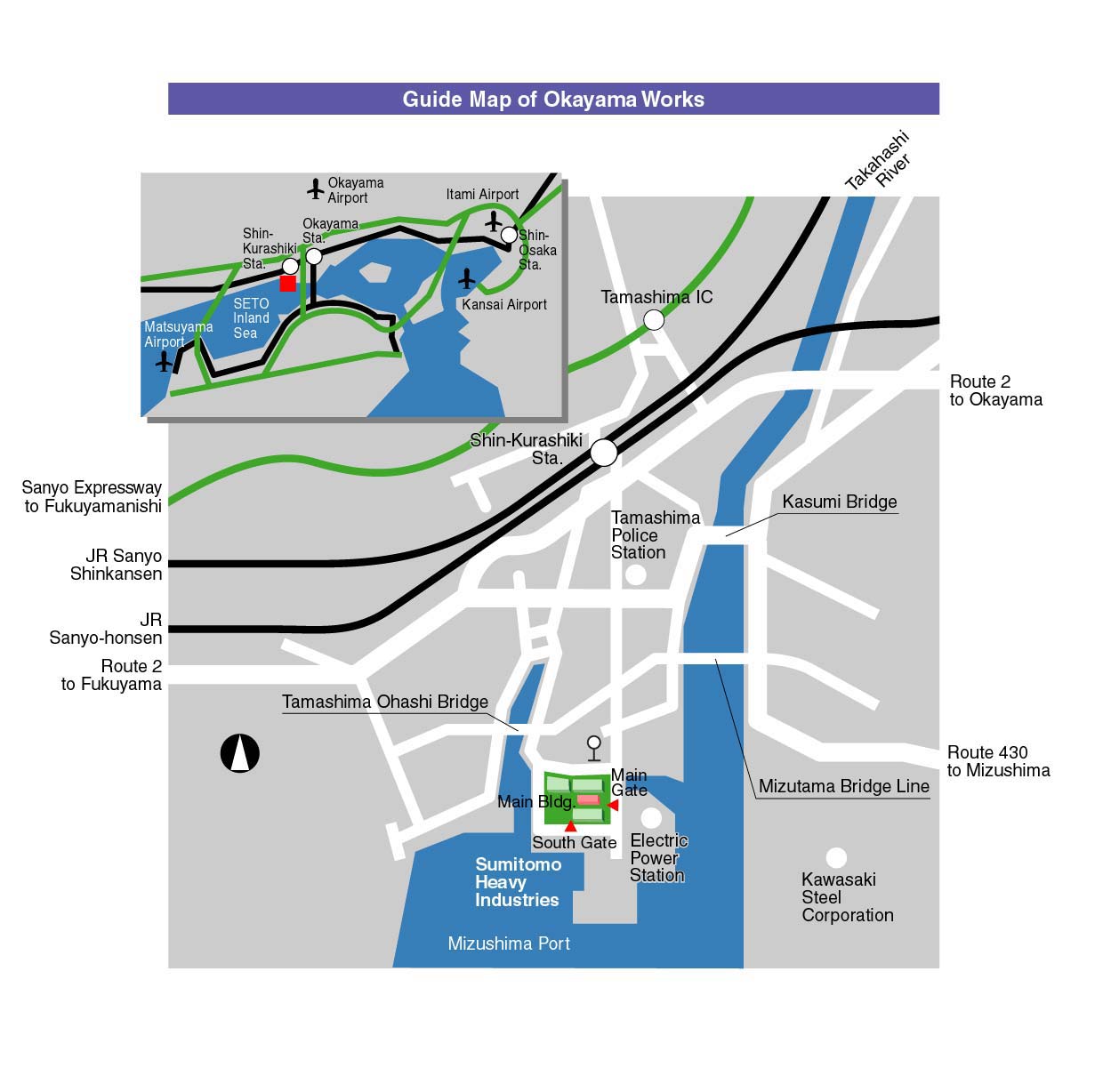 | Okayama Works | 8230 Tamashima Otoshima, Kurashiki-shi, Okayama Prefecture 713-8501 |